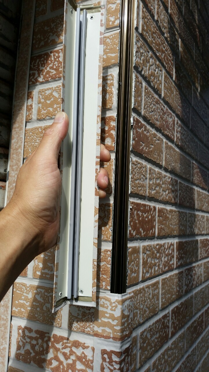 サイディングをはめ終わったら出隅部分に出隅カバーをはめこんでいきます。