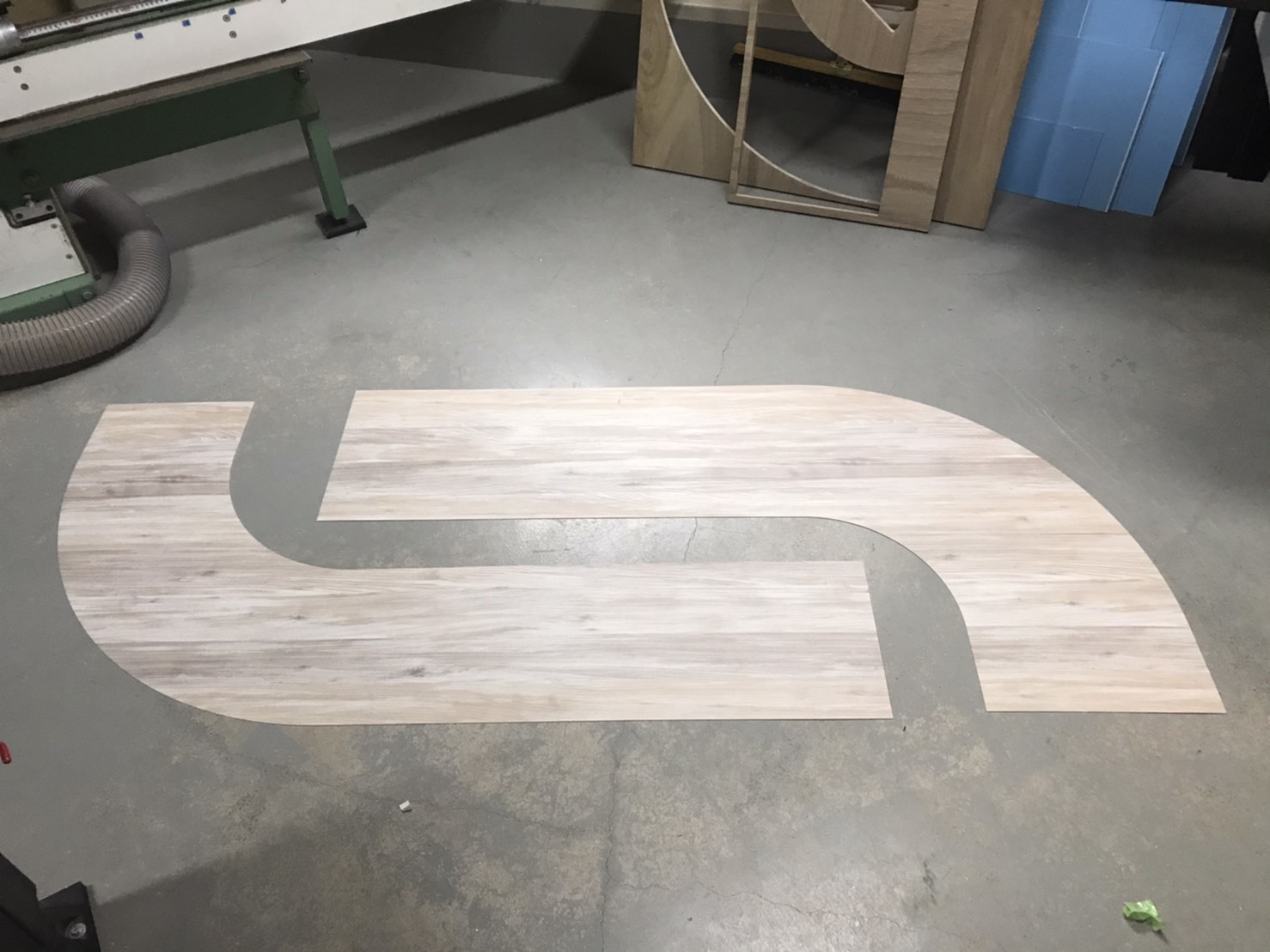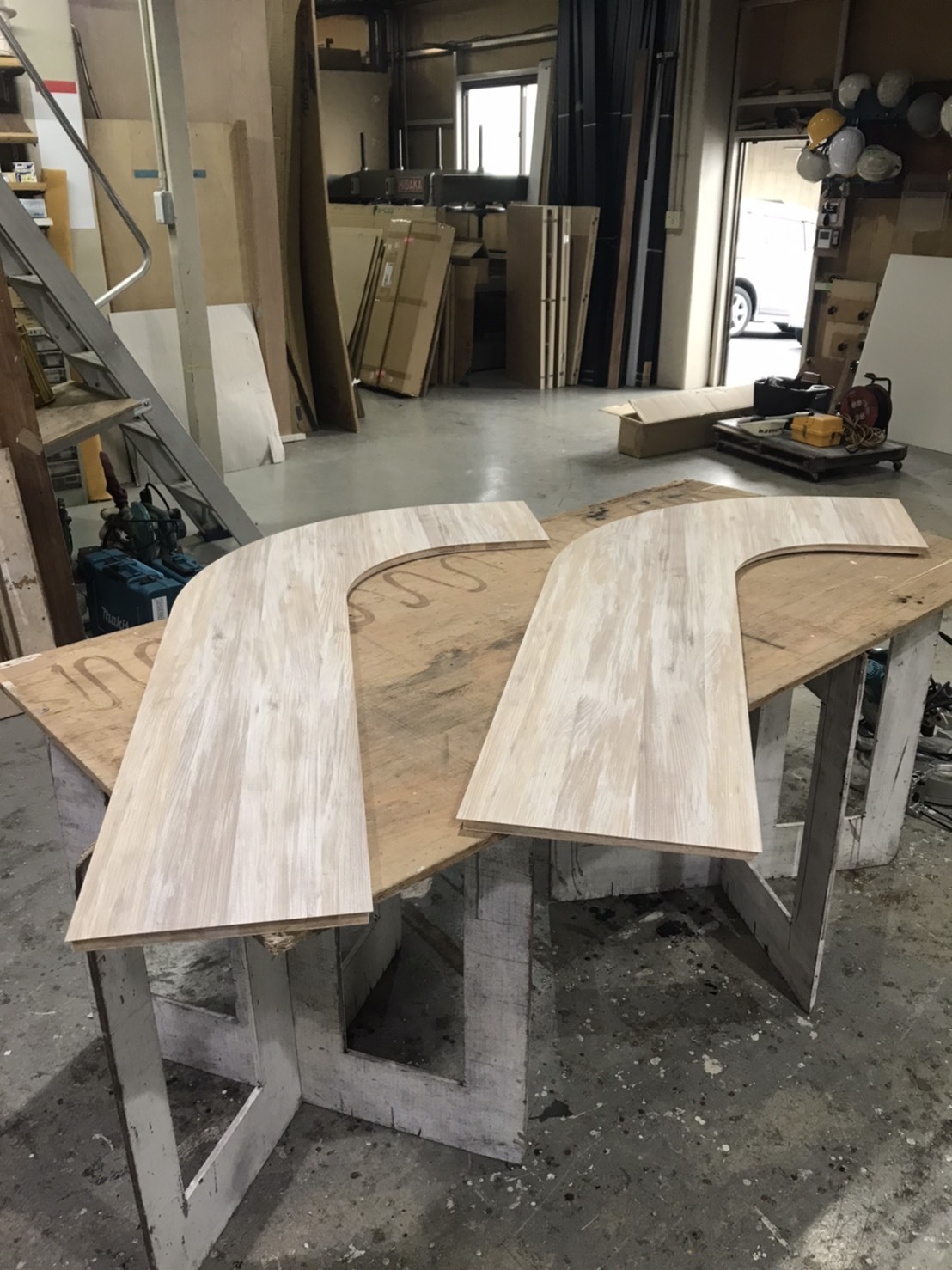 今回ご依頼いただいたカウンターの形が曲線になっている為、