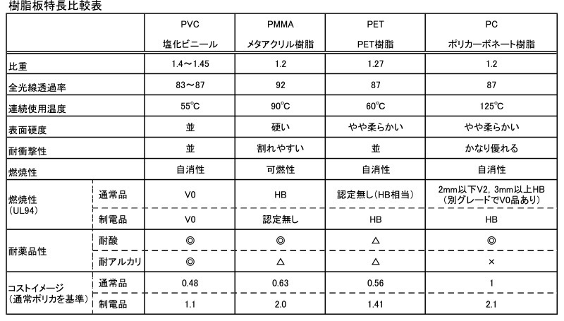 看板によく使われるのはそのほかに塩ビ、PET、ポリカとございまして