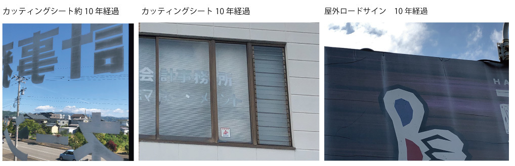 このように屋外のシート貼りをした看板はメーカー推奨で約3年から5年(長くても7年)が耐候年数となっております。