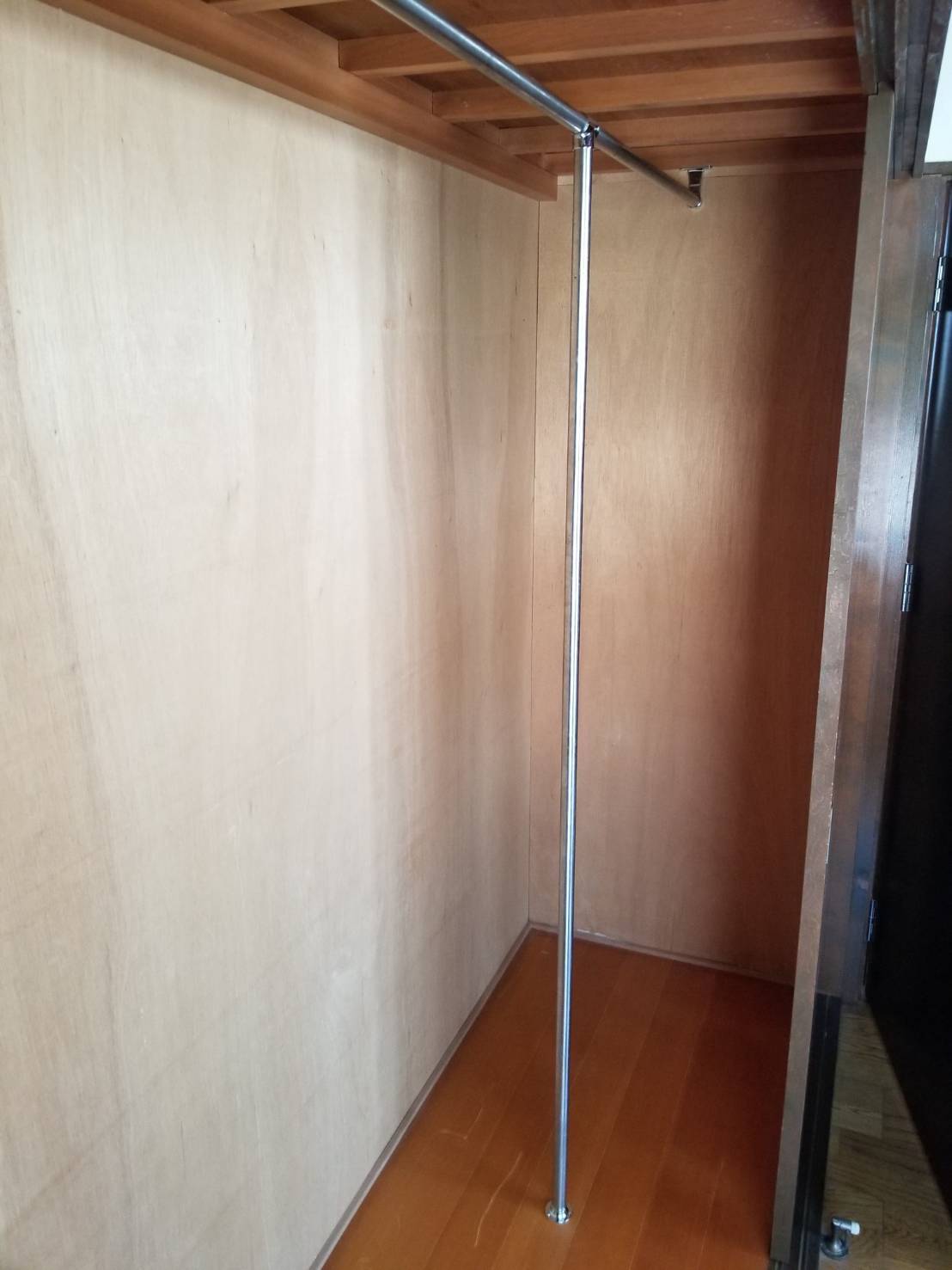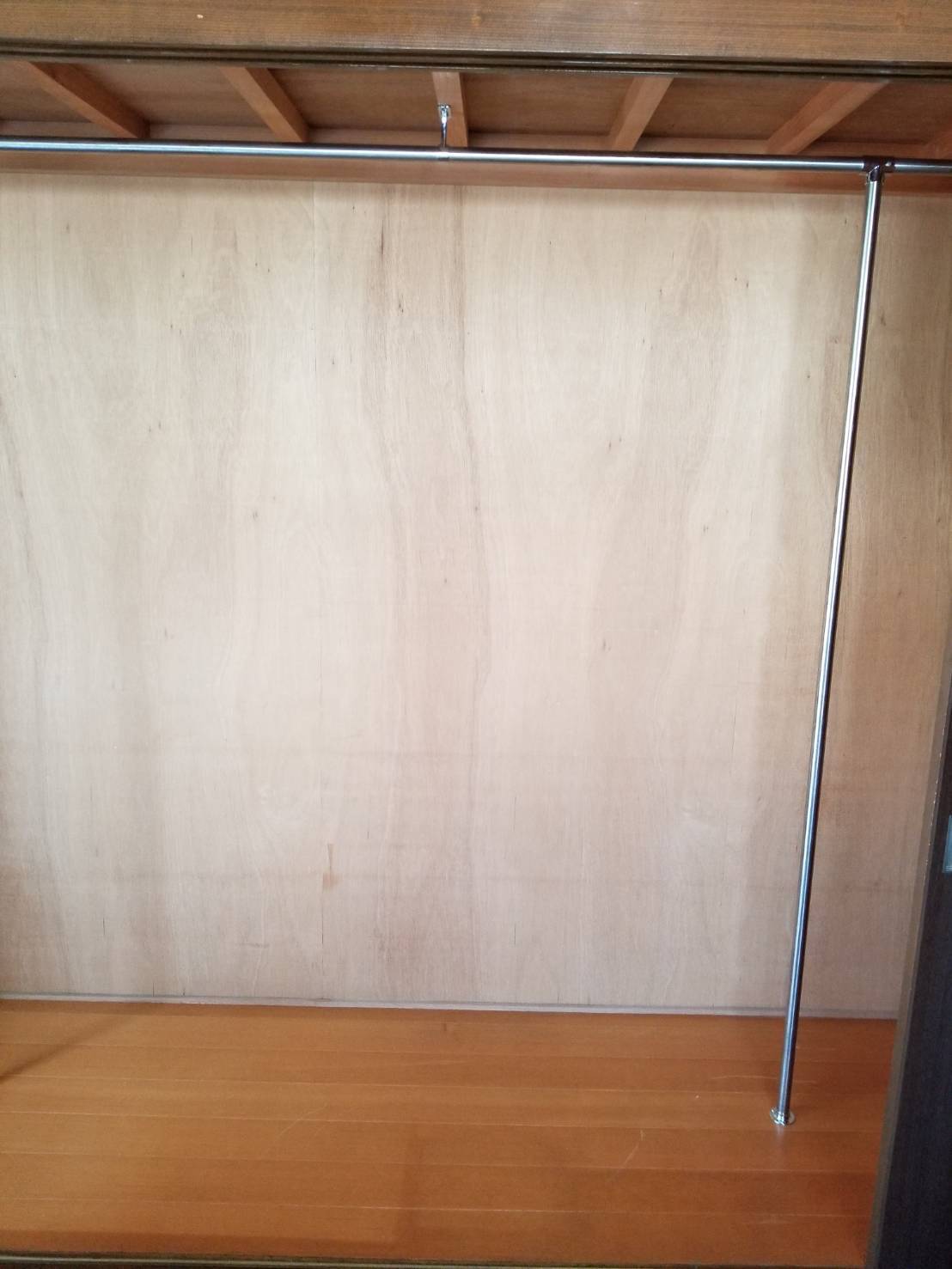 押し入れの天場でしっかり横パイプを固定しておりますが、