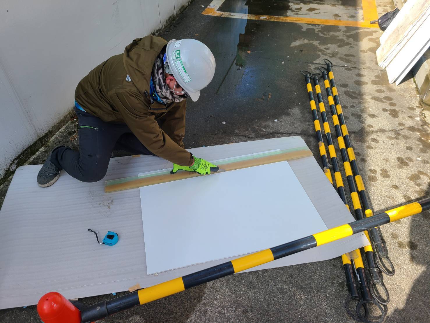 サイズカットが必要なケイカル板はカッターでカットしました。