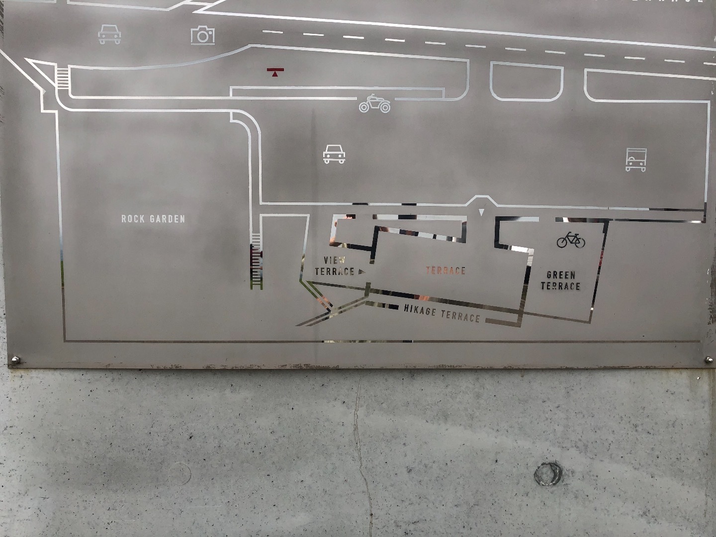 先日、おしゃれな看板を見つけました。ステンレス鏡面仕上げで、鏡のようにみえます。