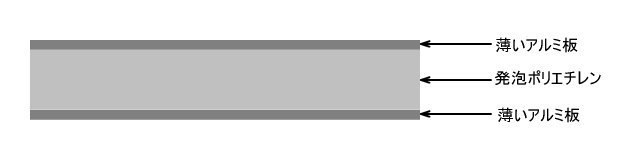 アルミ複合板は、薄いアルミ板2枚で樹脂をサンドイッチした板です。