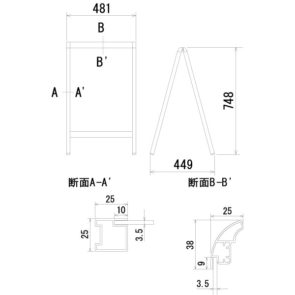 アルミ枠マーカースタンドA型2609 450×600 両面